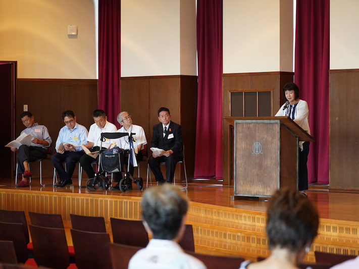 2017年度後期同窓会総会を8月11日(土・祝)に開催しました。出席は50名弱でしたが、今回総会の案内ハガキを出したところ、多くの方から出席または欠席委任が返信されましたので、定足数を上回り、無事に議事の収まるところとなりました。Ⅱ部の記念公演では、音楽療法士をされている佐藤望さん(高47回)をお招きし、テルミン演奏者の吉岡利浩さんと共に公演をいただきました。お二方には二度目となる公演の依頼でした。優しいピアノの音と不思議なテルミンの音調が相まって、皆さん心が癒やされた素敵な時間を過ごすことができました。